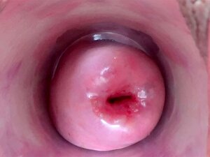 Étirer la viande de chatte béante avec un spéculum